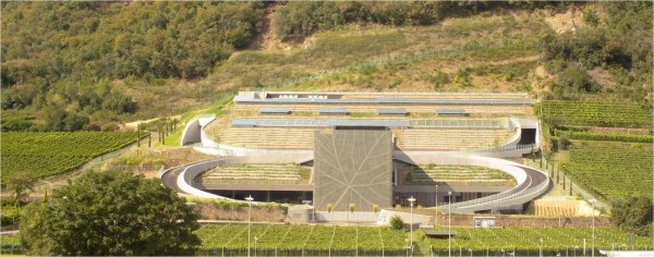 Un grande cubo con le nervature tipiche della foglia della vite è la nuova casa dei vini prodotti da Cantina Bolzano (architettura green dotata di certificazione CasaClimaWine®.)
